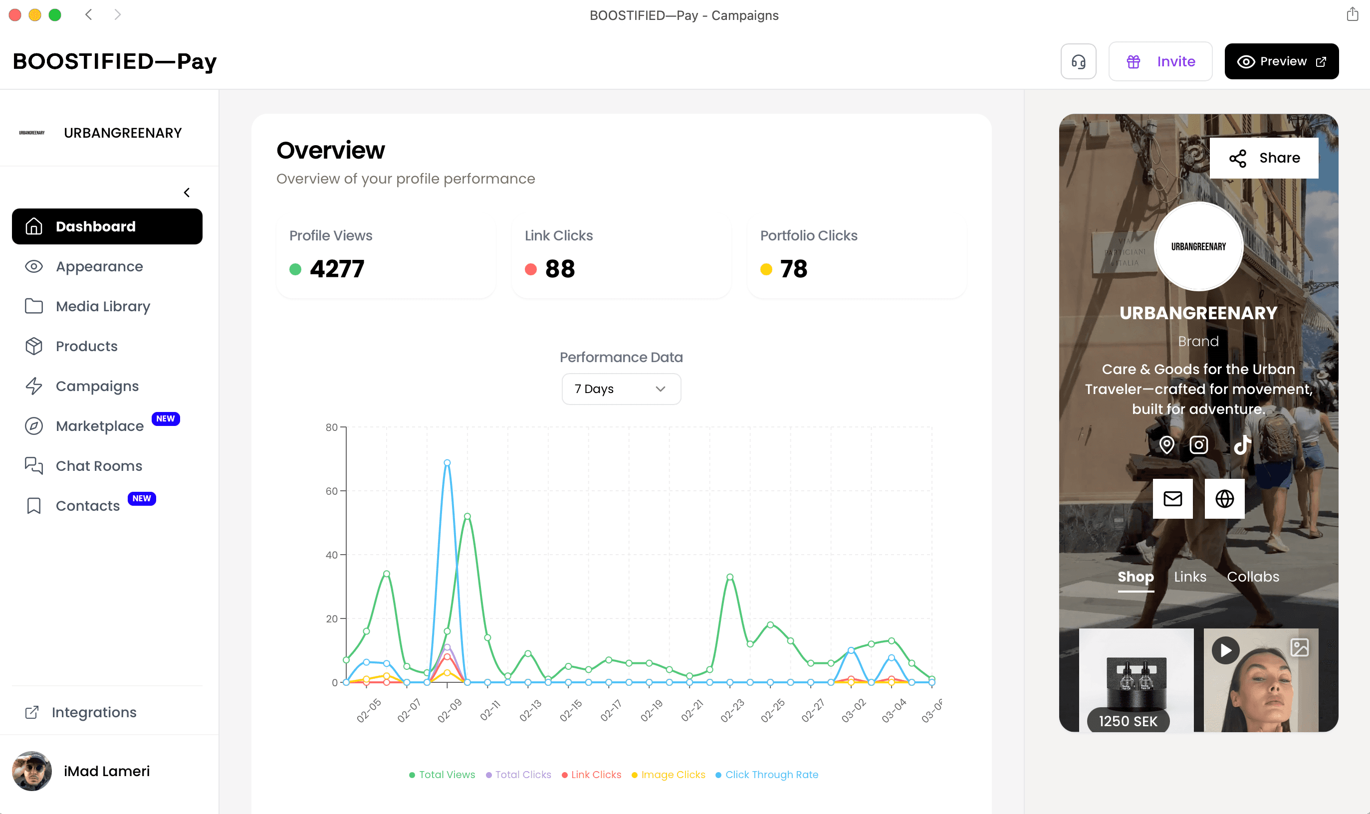 Portfolio, video, products, campaigns, chat, teams, analytics and a media library 🗂. Built for creators and brands who work together.