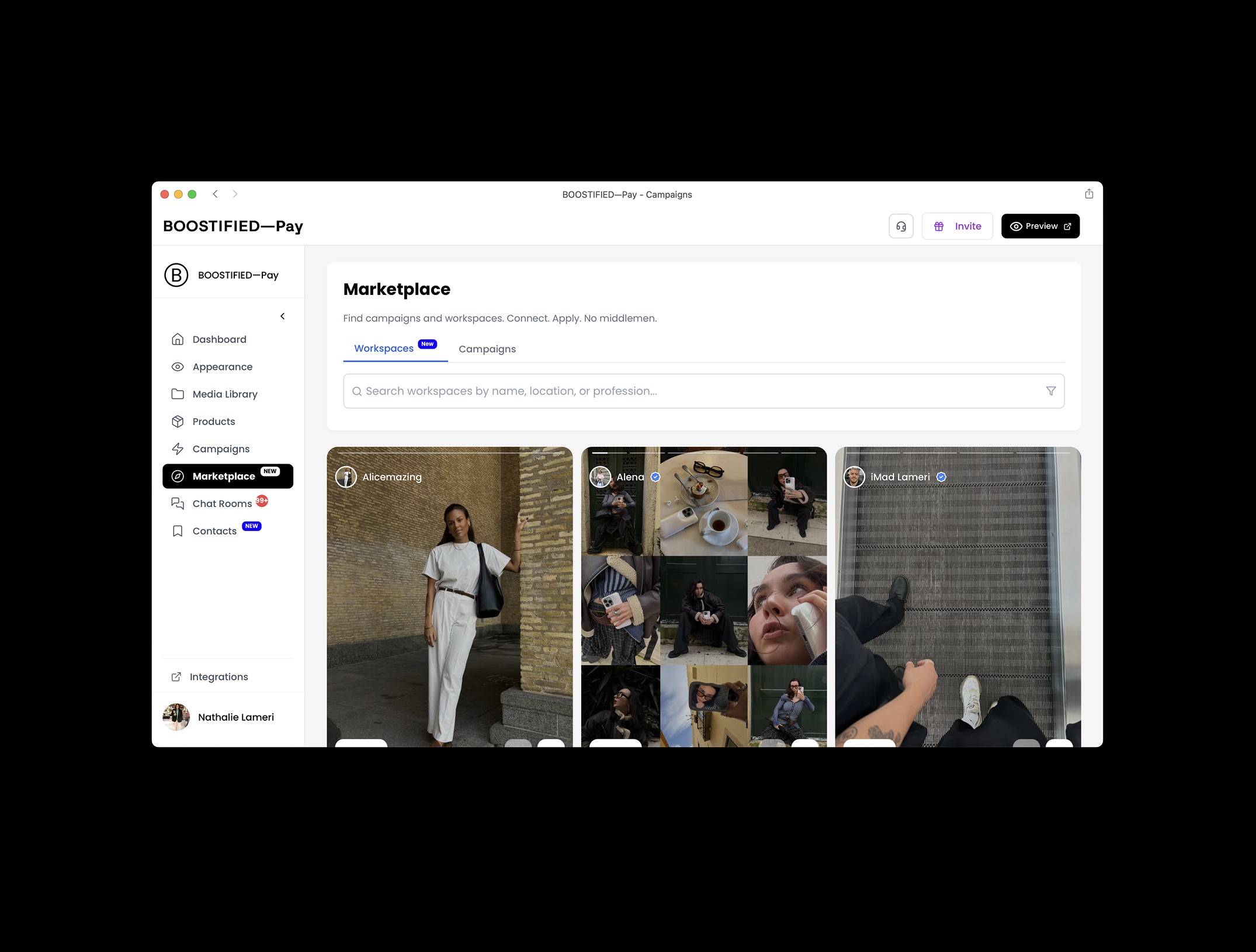 When we first launched Workspace Search, the idea was never to build just another search feature. It was to make discovery inside BOOSTIFIED—Pay feel more intentional. Less like scrolling through a list of profiles and more like actually finding people you’d want to work with. The right creators. The right brands. The right agencies. In the right place.
